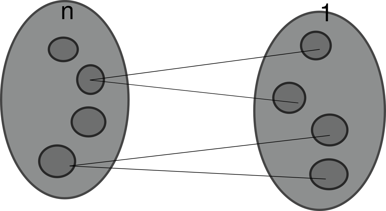 Genau ein Entity hat die Beziehung mit n-anderen Entities.